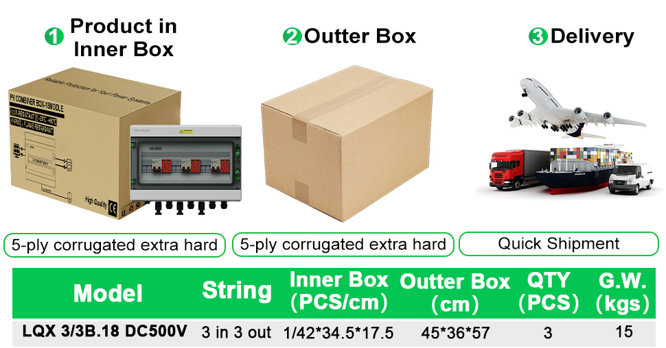 پی وی کمبینر باکس 3 میں 3 میں DC500V/600V/800V مؤثر طریقے سے انورٹرز اور شمسی پینل کو نقصان سے بچاتا ہے اور آگ سے بھیجتا ہے۔