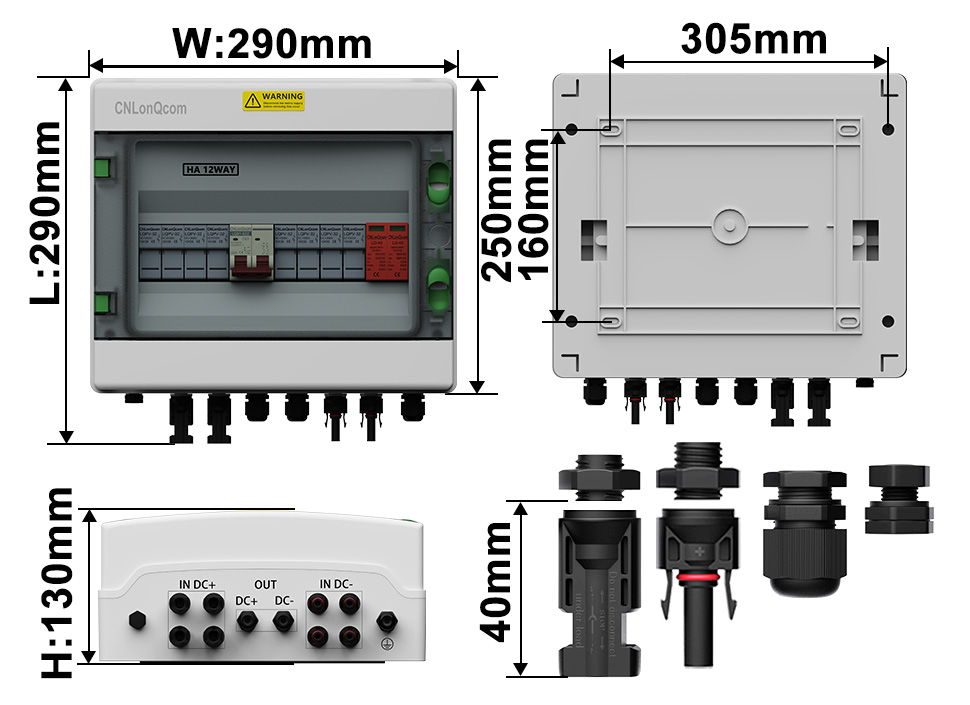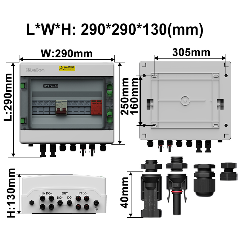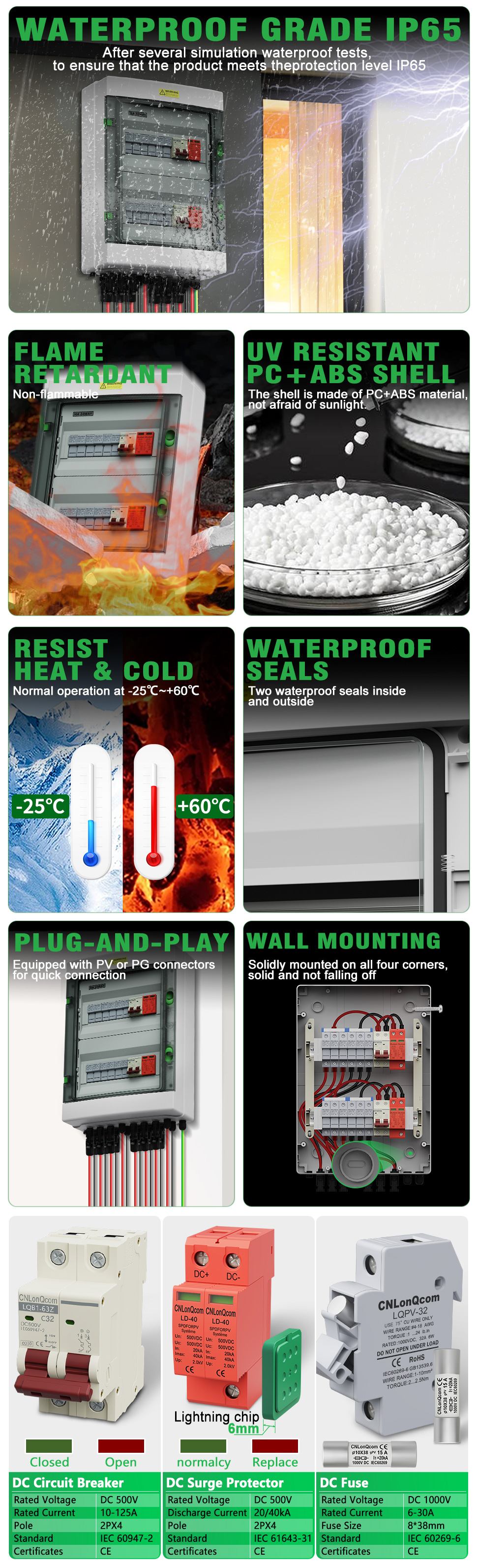 1 آؤٹ DC500V میں CNLONQCOM کا HA سیریز پلاسٹک PV کمبینر باکس 4 میں مہر بند تعمیر ، اوورلوڈ پروٹیکشن ، شارٹ سرکٹ پروٹیکشن ، اوور وولٹیج پروٹیکشن ، دھول ، نمی اور بجلی کے تحفظ کے ساتھ ایک پی سی+اے بی ایس واٹر پروف کیس ہے۔